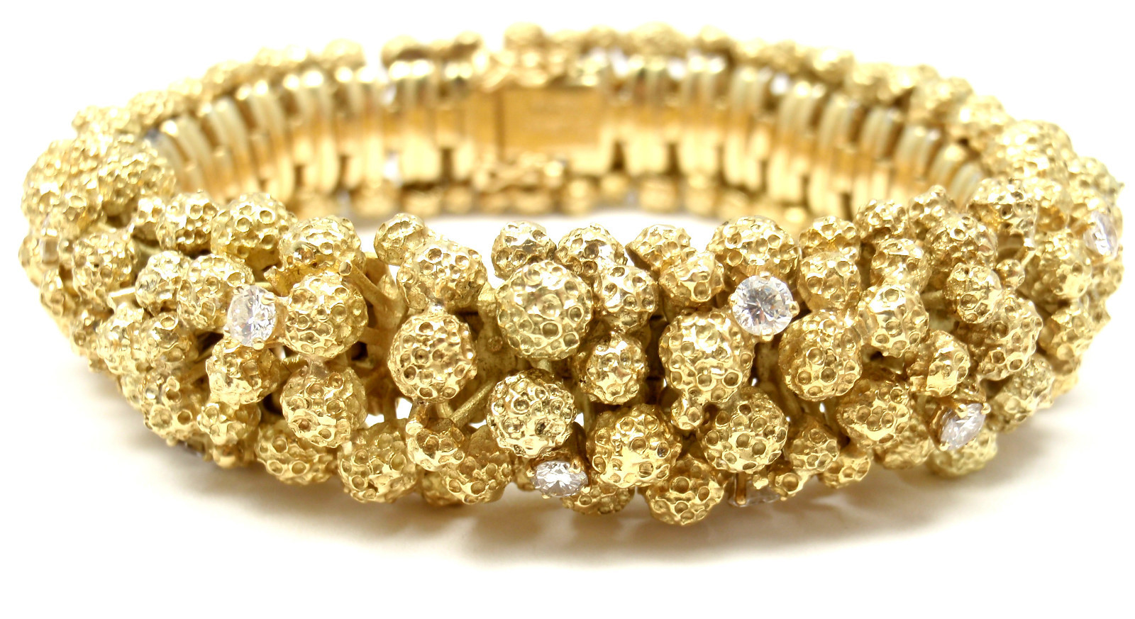 Die für Bulgari typische, eigene Formensprache, inspiriert von griechischer und römischer Kunst, aus goldenen, mit großen bunten Edelsteinen besetzten Ketten und Armbänder bildeten damals wie heute die wichtigsten Merkmale des Bulgari-Stils: Opulenz, Farbenpracht und Volumen.