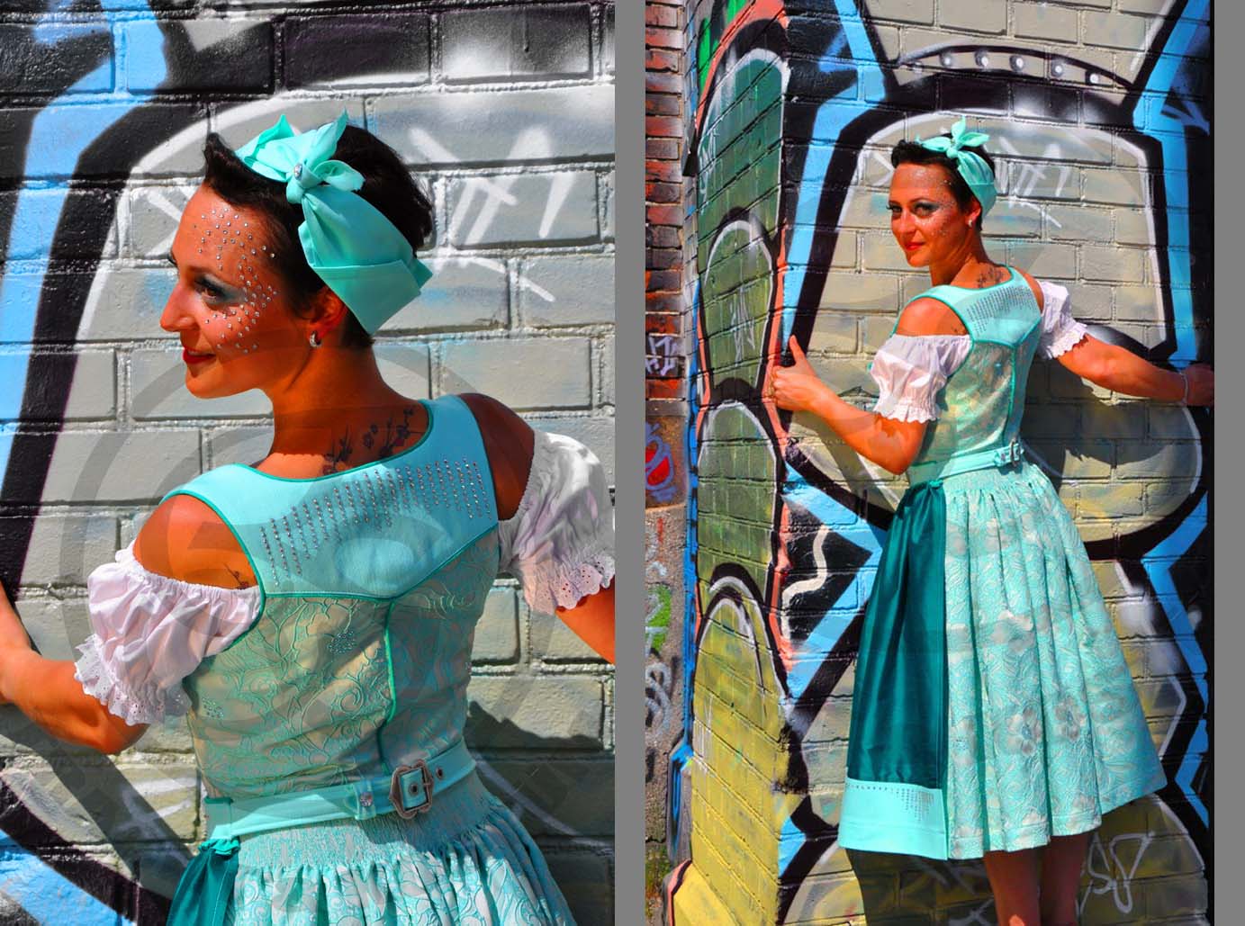 SE: Natürlich bin ich heute bereits um einige Erfahrungen reicher und stelle fest dass sich Eines nicht geändert hat denn, wenn ich durch die Stoffabteilung ziehe, auf der suche nach Neuem, fühle ich mich nach wie vor wie „Alice im Wunderland“ und werde wieder zum kleinen Mädchen mit ganz vielen Träumen. An diesen Träumen möchte ich Sie Teil haben lassen und Sie mit ganz vielen wunderschönen Trachten-Kleidern verwöhnen.