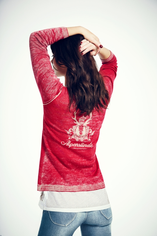 PF: Alpensünde steht für ein verführerisches Statement-Label, für die stilvolle Essenz aus alpiner Lebensart und urbanem Glamour, ein Credo für Heimatverbundenheit und Modeinstinkt gleichermaßen. Extravagant verzierte Seidenblusen, coole Sweater mit Vintage-Druck oder stylishe Print-Shirts inklusive rockigem Nietenbesatz – es sind die Details, die Modeherzen höher schlagen lassen. Alpensünde vereint darin Trendfaktor mit traditionellem Spirit und moderner High-End-Verarbeitung. Das Ergebnis ist außergewöhnlich und schlichtweg anziehend. Ich nenne es Alpen-Couture.