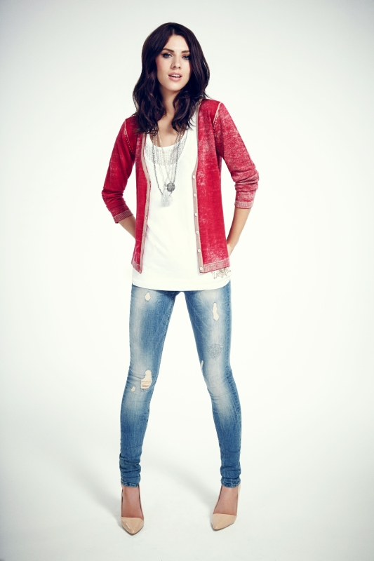 Funkelnde Strass- oder Nieten-Applikationen setzen edle Blusen und lässige Pullover in Szene. Erlesene Materialien wie Seide oder Kaschmir verbünden sich mit klassischen, minimalistischen Schnittformen und werden durch luxuriöse Details akzentuiert. Hochwertige Applikationen und ausgesuchte Stoffe wie reine Seide, Baumwolle oder Kaschmir werden gepaart mit akkuraten Schnittführungen zu exklusiven, schmeichelhaften Lieblingsstücken mit perfekter Passform.