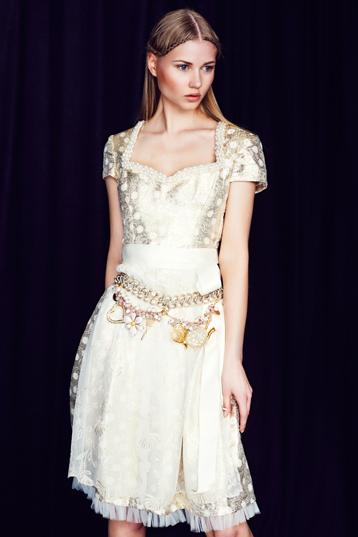 Ophelia Blaimer verwendet für ihre Dirndl Couture ausschließlich hochwertige Materialien wie französischer Brokat, Seidensatin, Seidentaft und Organza. Stück für Stück wird mit Perlen, Knöpfen, alten Ornamenten und Palietten-Applikationen das Dirndl individuell bestickt und aufgehübscht und wird dadurch zu einem wirklich einzigartigen Mode-Kunstwerk.